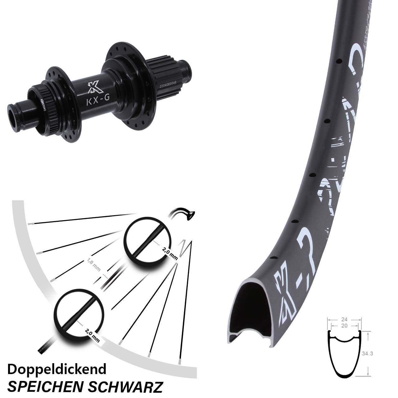 Centerlock Hinterrad 12x142 28 Zoll KX-GSR Road Heavy Duty Shimano Micro Spline mit Doppeldickendspeichen