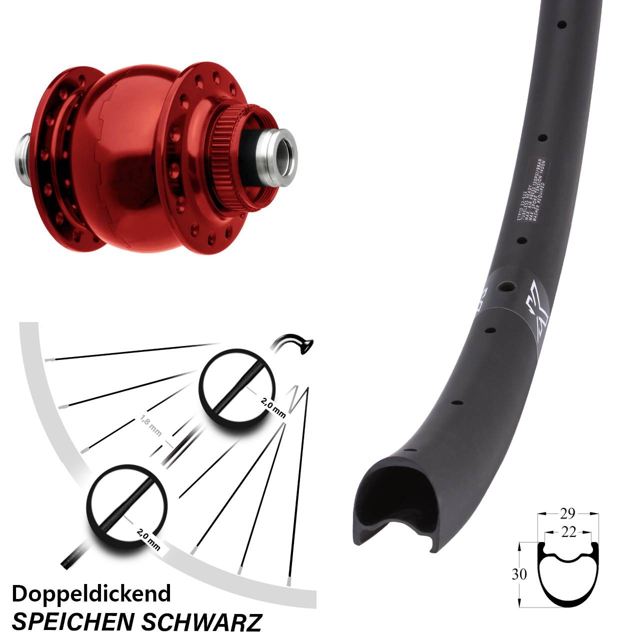 - Vorderrad 28 Zoll 29 Zoll KX-RC Gravel Carbon schwarz mit Nabendynamo SON 28 rot rot