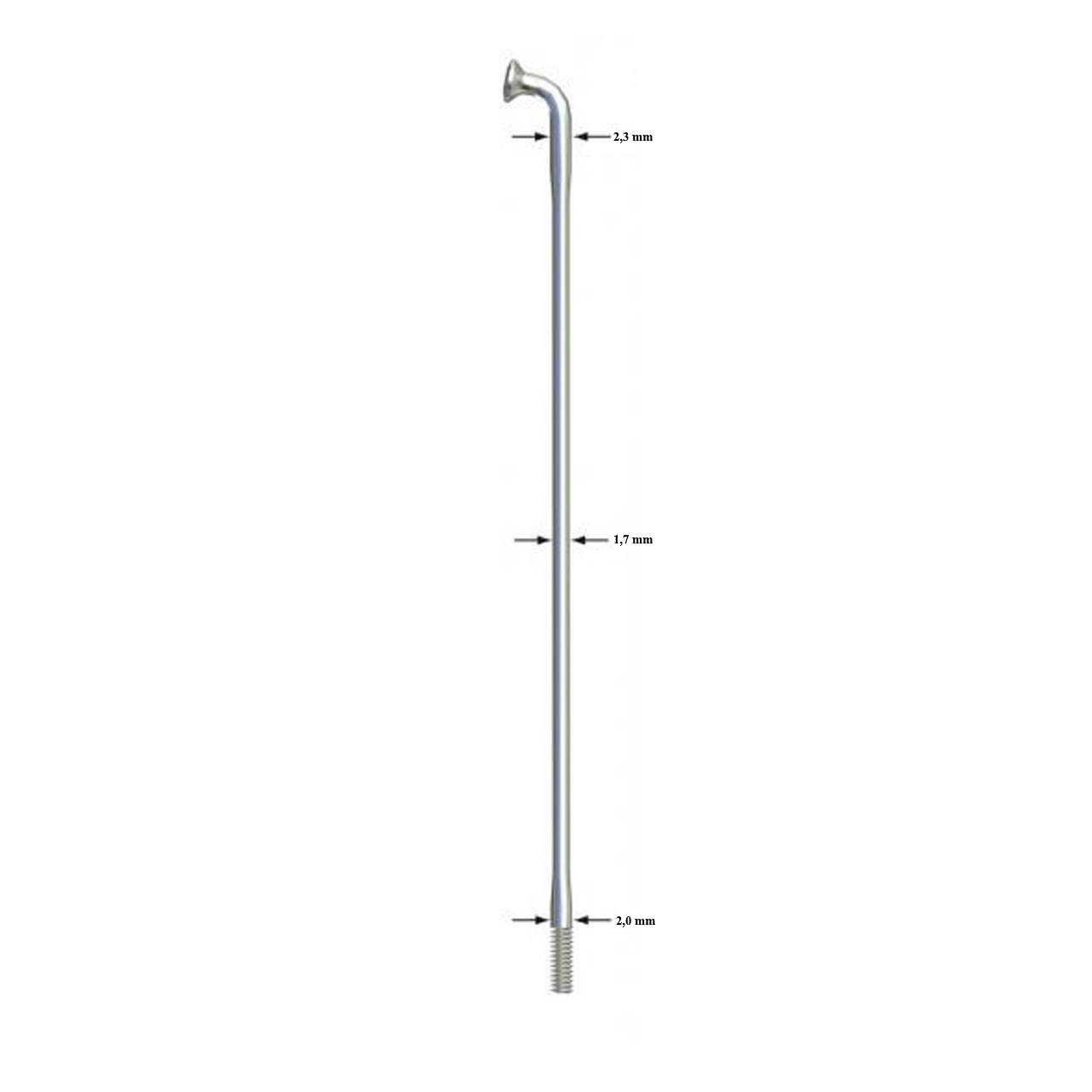 - Typ: besonders stabile und gewichtsoptimierte Doppeldickspeiche mit 1,7 mm im Mittelteil und 2,3 und 2 mm an den Endbereichen
