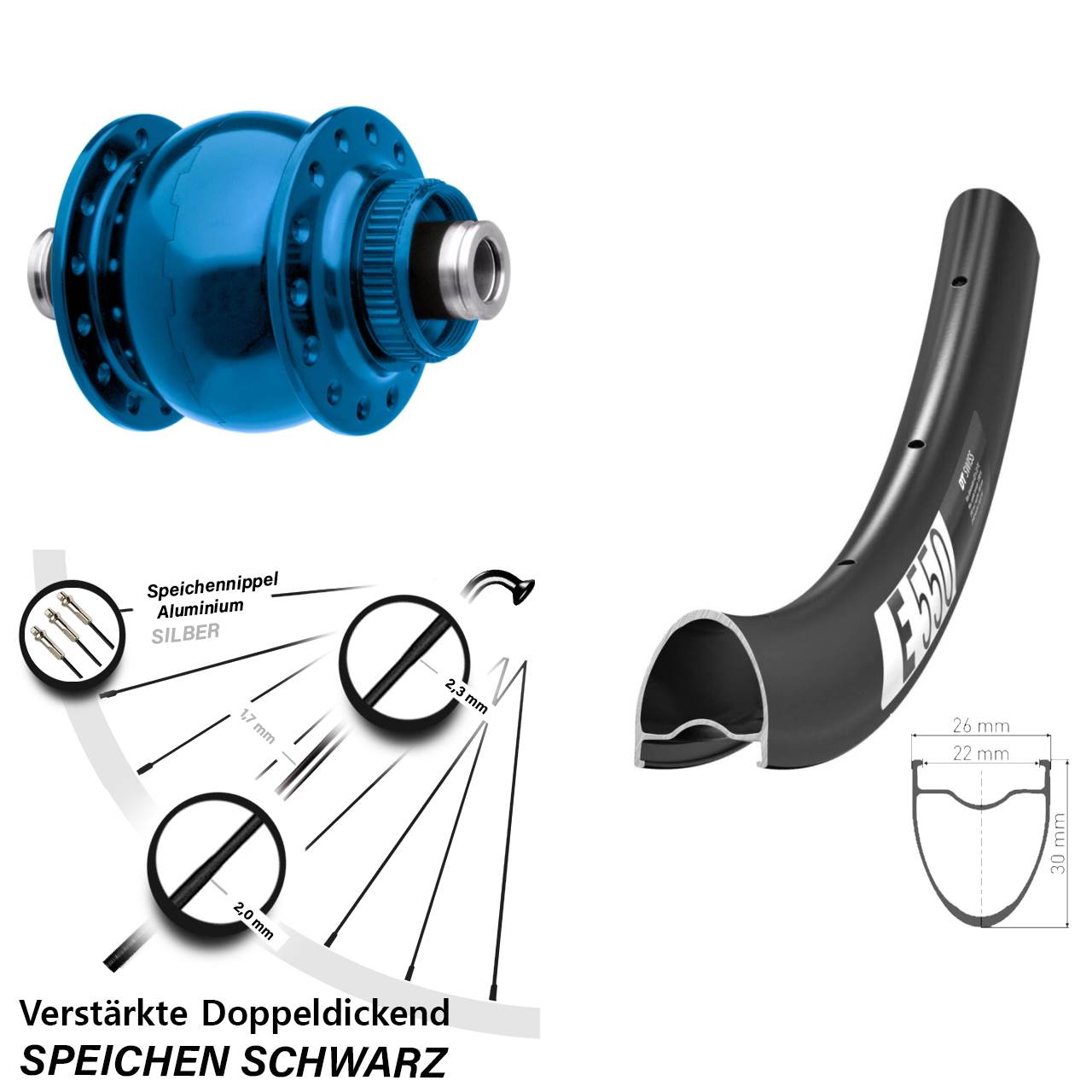 - Vorderrad 28 Zoll DT Swiss E550 schwarz mit Nabendynamo SON 28 blau blau
