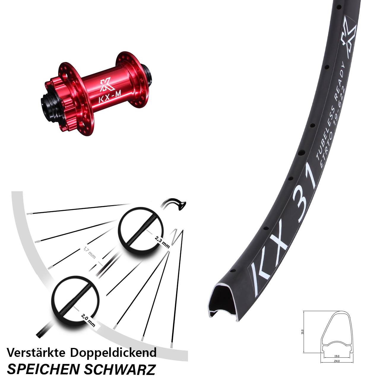 Technische Daten Vorderrad KX 31 Offset schwarz mit Nabe KX-M Steckachse rot