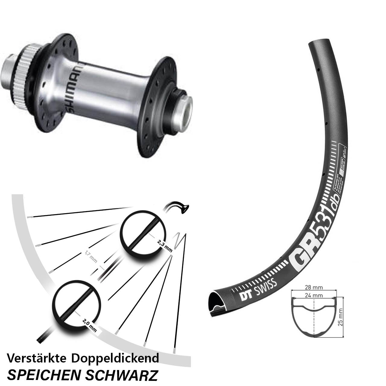 - Speichenstärke: 2,3-1,7-2,0 mm Edelstahl